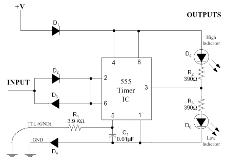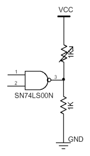 circuit associa les tensions als nivells lògics TTL, mentres que quan està a l'aire, el circuit